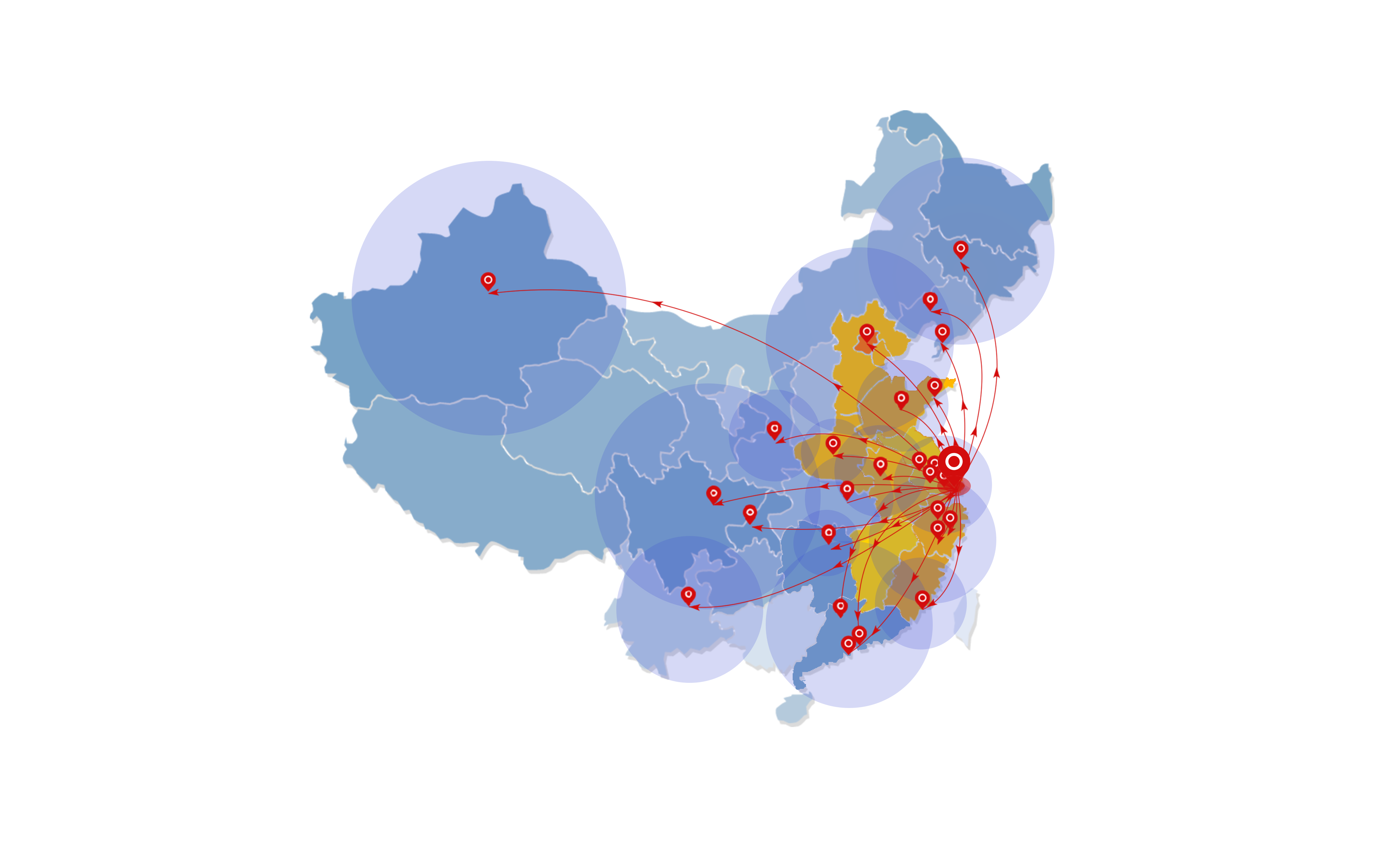 业务范围围绕京津塘、长三角、珠三角等行政中心区分布局。